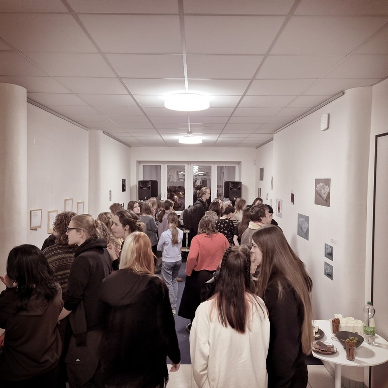 Čtvrteční (6.2.2025) vernisáž ve výtvarce byla oslavou talentu našich bývalých žáků. Mija Ratushna představila své autorské šperky, Šimon Přívratský básně a Vojtěch Rumlar dodal hudební atmosféru. Všichni tři dnes studují na vysokých školách, ale jejich kořeny jsou pevně spjaté s výtvarným oborem Střeziny.