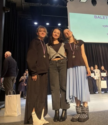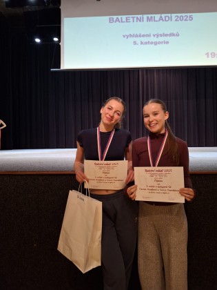 Tanečnice naší školy se o víkendu 18. a 19. října zúčastnily taneční soutěže Baletní mládí. Do Prahy bylo vysláno celkem 6 choreografií z ročníků Dany Pešové, Eriky Potůčkové a Markéty Roth Elblové. Konkurence na soutěži byla veliká, i přes to si ale holky vybojovaly krásná umístění.