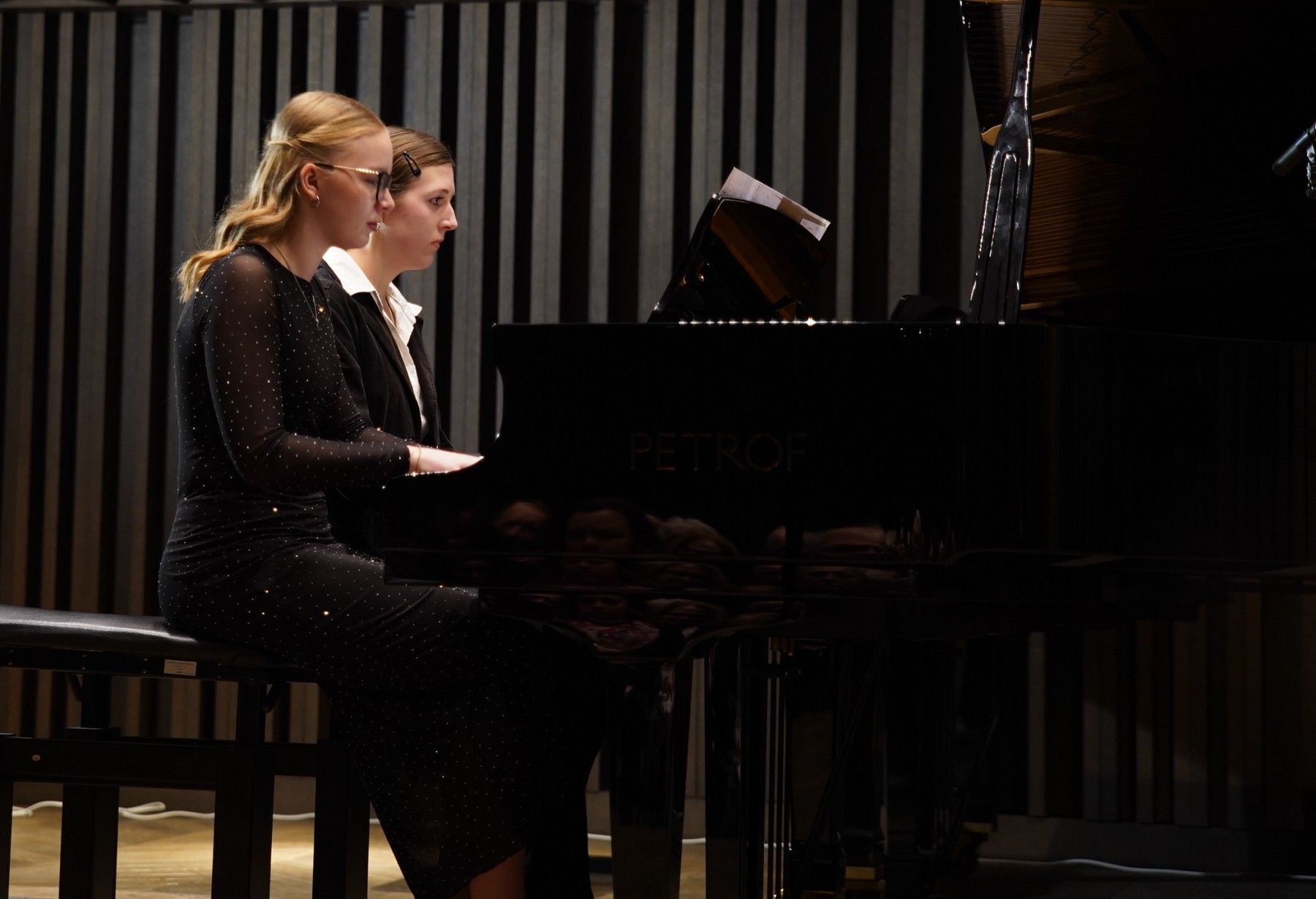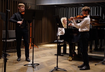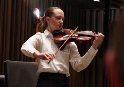 Několik dní po GALA koncertu se střezinští hudebníci představili veřejnosti znovu. Tentokrát to bylo v úterý (3.1.2026) večer v nově zrekonstruované Aule sourozenců Čapkových v budově Univerzity Hradec Králové. Koncert sestavila Martina Vlčková, program uváděl Tomáš Vespalec a mohl se uskutečnit díky Lence Hejnové, která působí jako pedagog na Střezině a zároveň na UHK. Přítomní si vychutnali výborné výkony především souborů. Zazněly skladby, které žáci cvičí na letošní soutěž ministerstva školství. První kola se budou odehrávat už v březnu. Tak všem moc držíme palce.