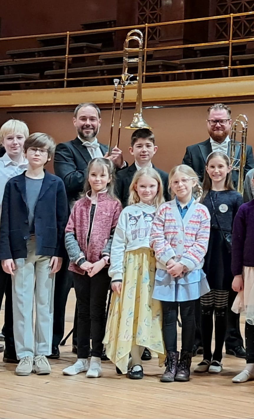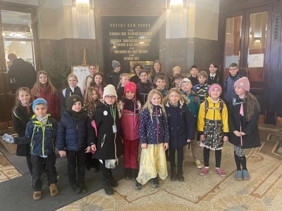 Ve čtvrtek 26.března 2026 jsme vyrazili vlakem s 26 žáky naší ZUŠ na krásný workshop České filharmonie s názvem „S Marthou a Ježkem v říši hudebních divů“ do Dvořákovy síně v Rudolfinu. Do říše hudebních divů zavítal také nádherný živý ježek africký, který má se samotným skladatelem Jaroslavem Ježkem mnoho společného. V rámci workshopu jsme se dozvěděli spousty zajímavostí ze života skladatele, mohli se zaposlouchat do aranží jeho krásných písní v podání zpěváka Ondřeje Rumla za doprovodu „Sdružení hlubokých žesťů České filharmonie“ pod vedením trombonisty Roberta Kozánka. Za tímto souborem vyrazila mimo ostatní žáky skupina trombonistů ze třídy paní učitelky Lucie Houdkové.